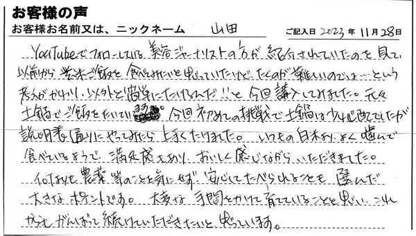 山田さんには、ミルキークイーン玄米をお買い上げいただきました。