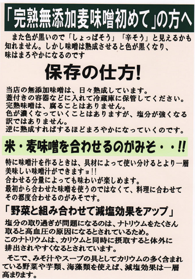 無添加完熟 麦味噌 1kg